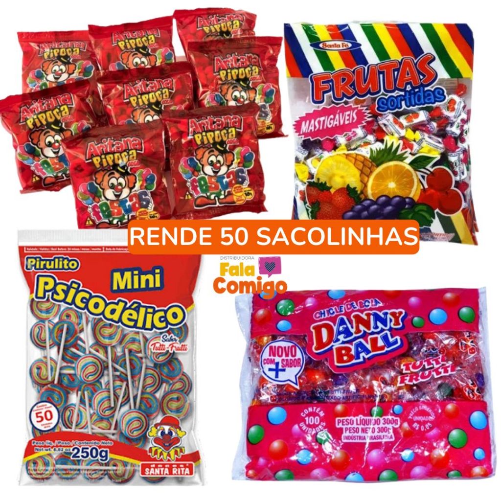 Kit Festa Infantil Para 50 Sacolinha Surpresa Doces Guloseimas Aniversário