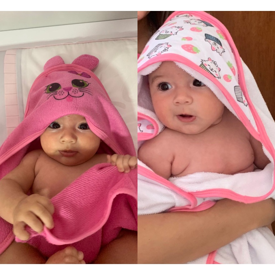 Kit 2 unidades - Toalhas com Capuz e Orelhinha infantil para bebê recém nascido tecido felpudo