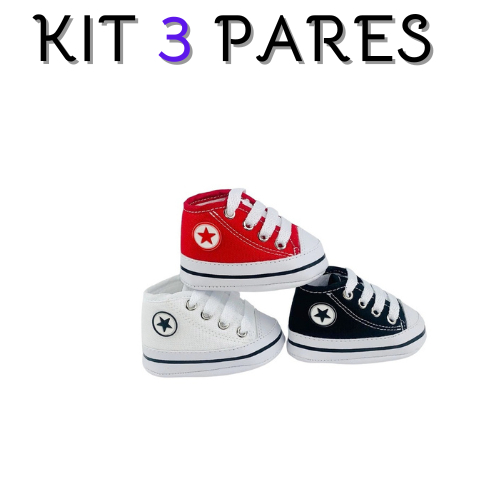 KIT COM 3 PARES TÊNIS SAPATINHO CANO ALTO BEBÊ PARA RECÉM NASCIDO DIRETO DA FABRICA