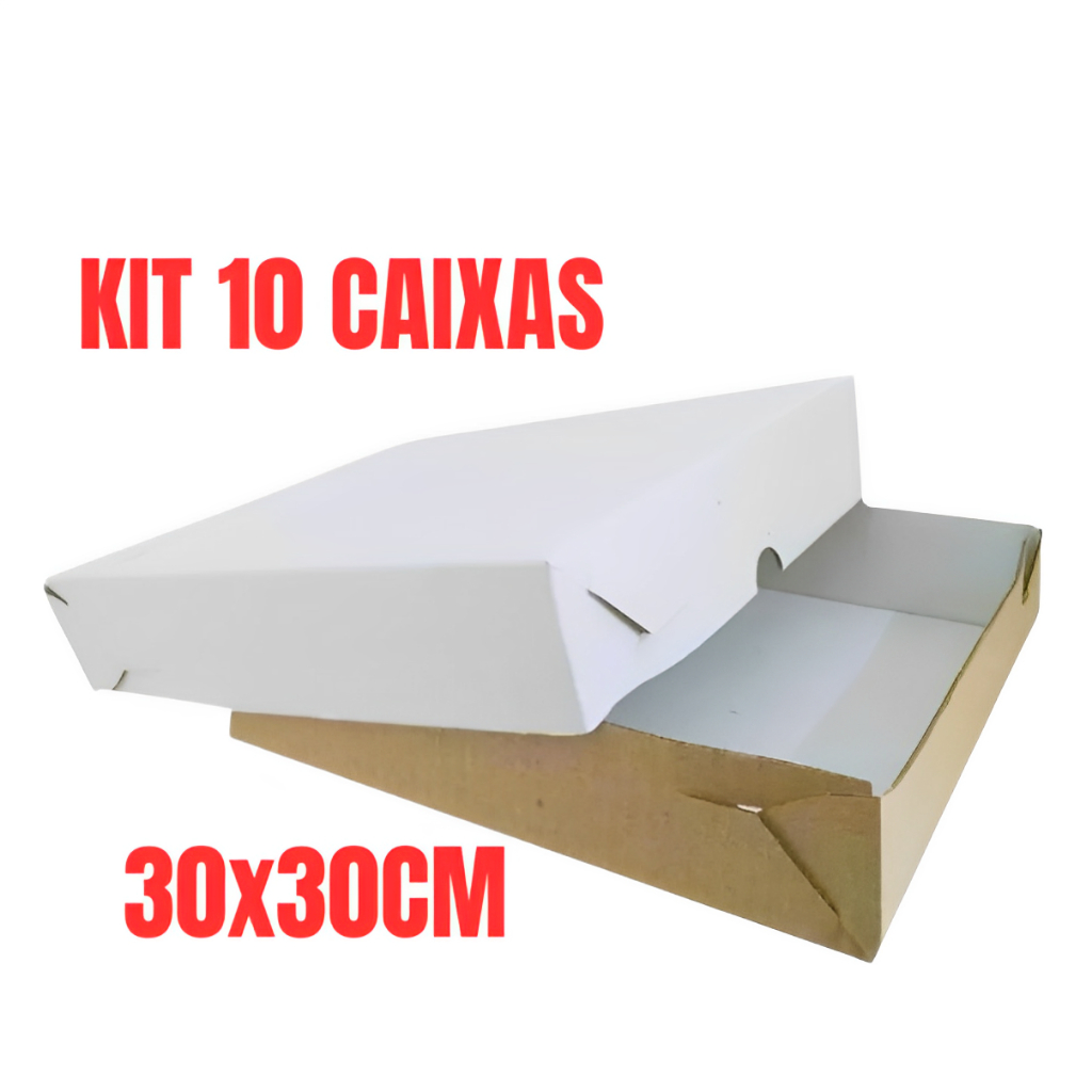 Caixa Para Esfihas Salgados Doces Embalagem De Papelão Quadrada 30x30cm - 10 unidades (10 tampas e 10 fundos)