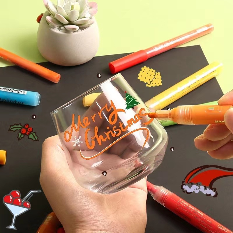 KIT 12 cores Marcadores de acrílico crianças canetas de pintura conjunto marcador de tinta graffti caneta oleosa papelaria para pintura rupestre