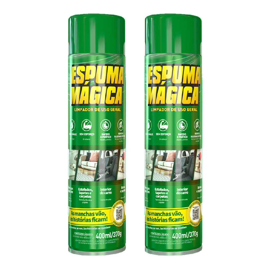 Kit 2 Espuma Mágica Aerosol 400ml Limpador uso Geral Limpeza a Seco Remove Manchas