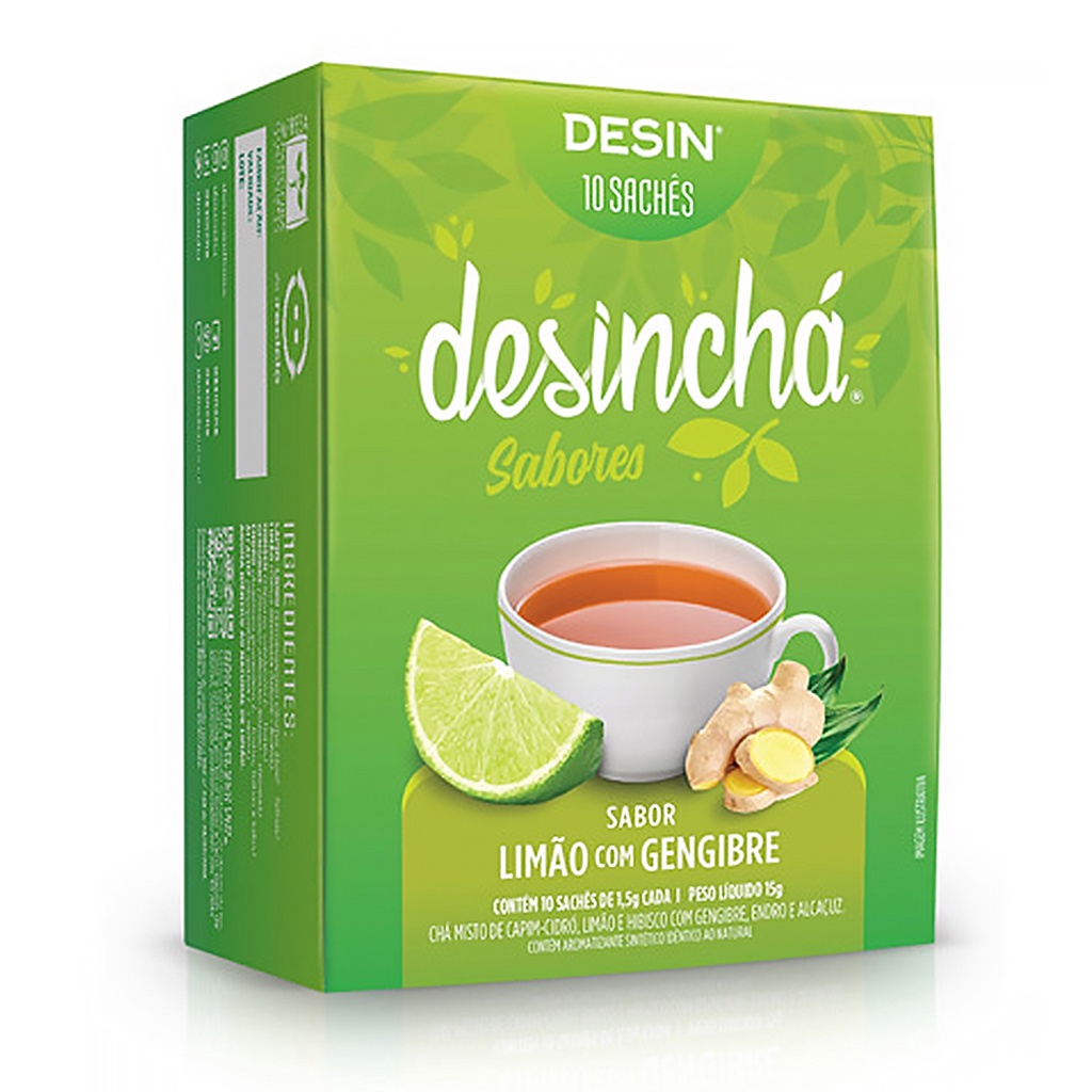 Desinchá Chá 100% Natural Original Antioxidante Sabor Limão com Gengibre 10 Sachês Cada Pacote 1,5g
