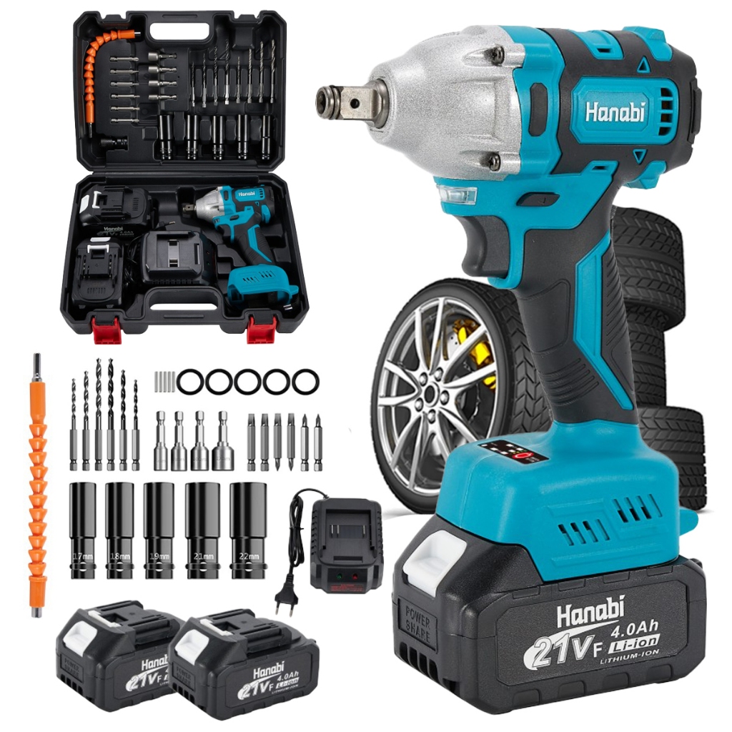 Parafusadeira Furadeira Chave de Impacto Sem Fio Brushless 350Nm Hanabi 21V 2 Baterias Profissional