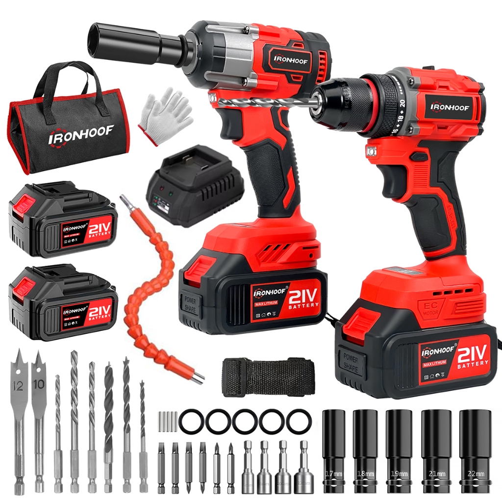 Parafusadeira Furadeira E Chave De Impacto 21V E 2 Baterias Sem Fio Soquetes Com Maleta Profissional