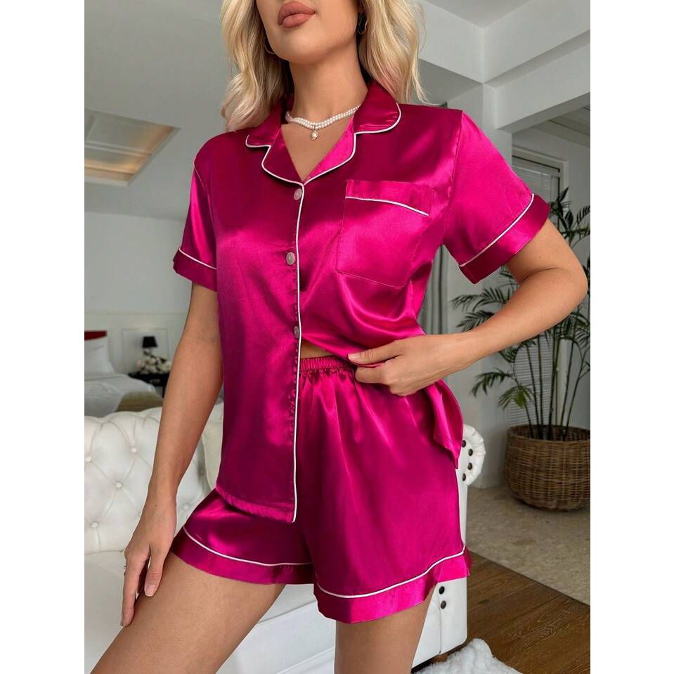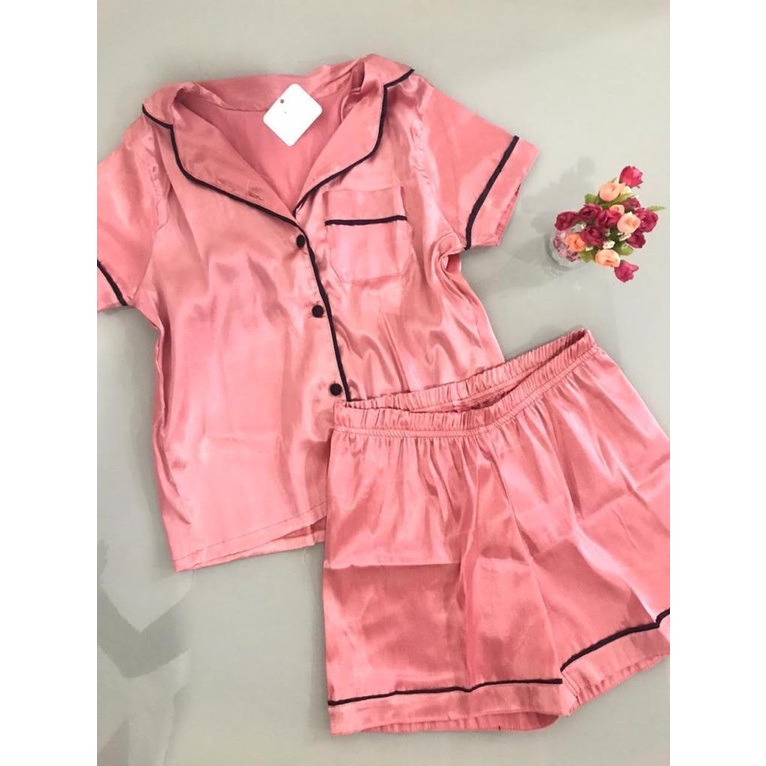 Pijama Feminino Americano em Cetim Manga curta Short e com Botões