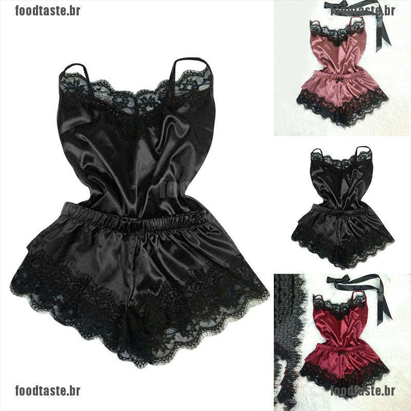 Conjunto De Pijama Feminino Sexy De Cetim De Seda