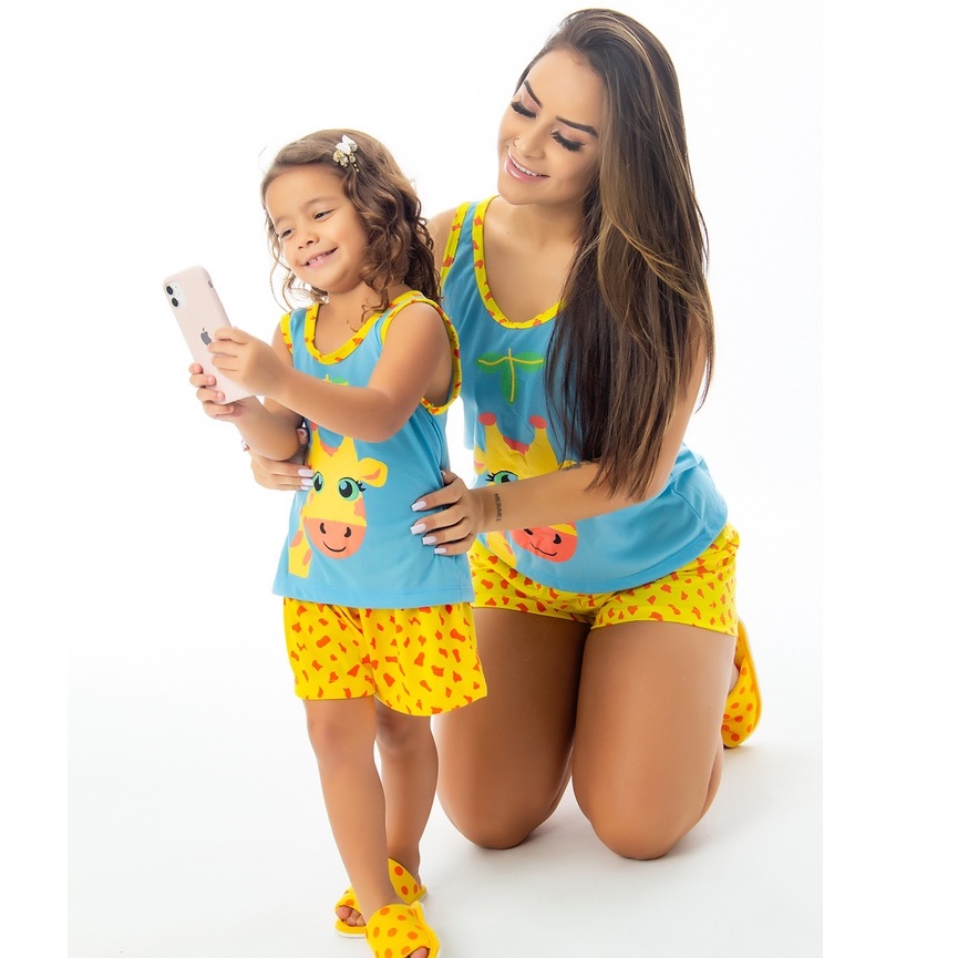 Kit 2 Short Doll Girafa Mãe e Filha Pijama Curto Verão Regata