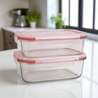 Kit 24 Potes Pote de Vidro Borossilicato Retangular 330ml Com Tampa Trava Hermética Resistente Vai ao Forno Microondas e Freezer Organizadora de Geladeira Marmita Alimentação Fitness Super Vedação em Sílicone
