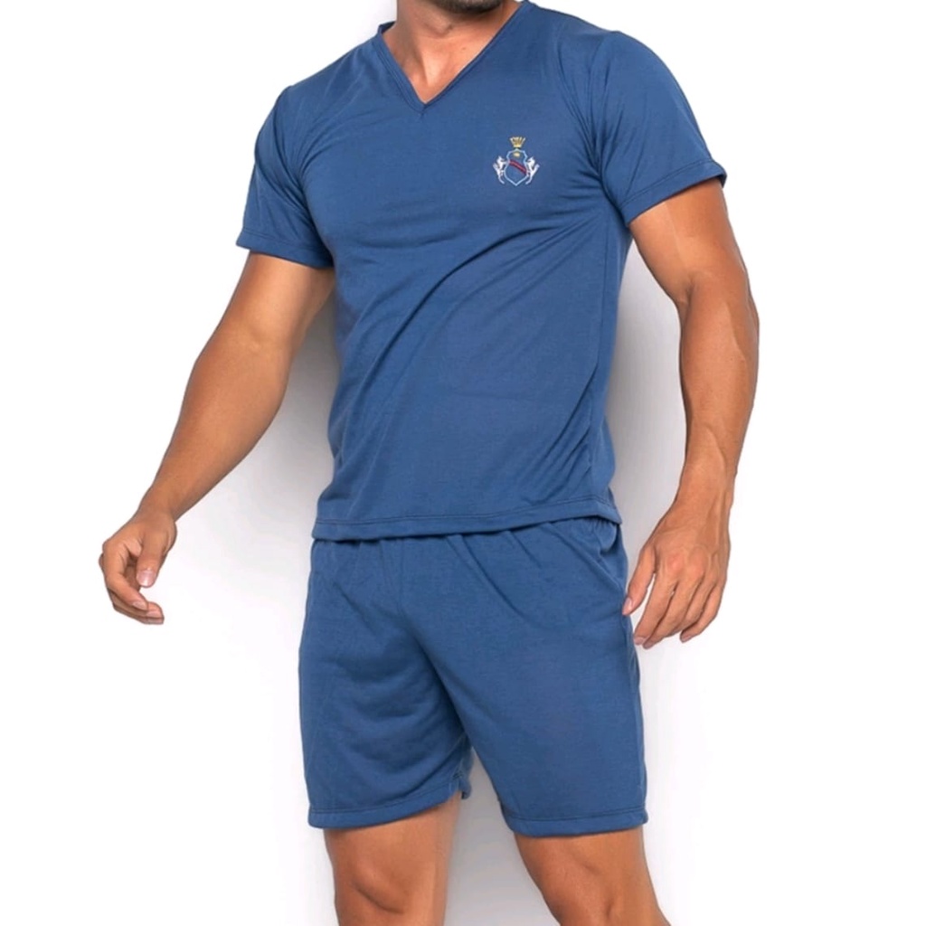 Pijama Masculino Adulto De Verão Camisa E Short Malha Luxo