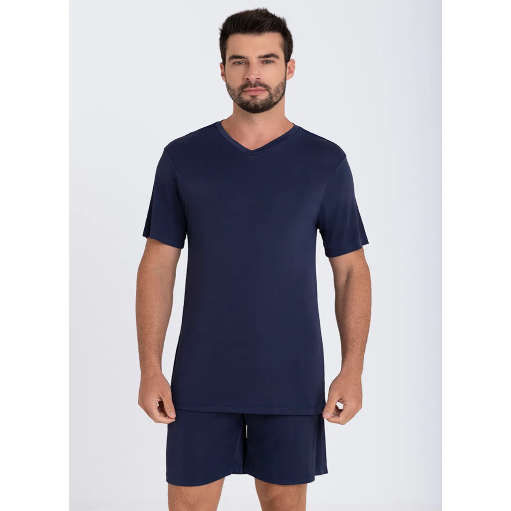 Pijama Masculino Adulto de Verão Manga Curta e Short Bermuda Roupa de Dormir de Homem em Malha Lisa
