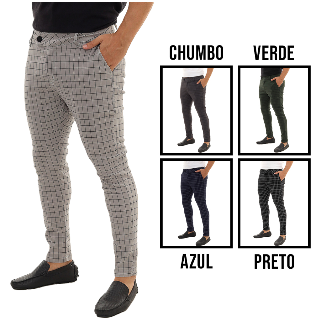 Calça Alfaiataria Masculina Xadrez Quadriculada Skinny Premium Bengaline Bolso Embutido slim Fit