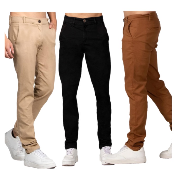 Calça Masculina Slim Chino Alfaiataria Com Bolso Embutido Casual Social Esporte Fino