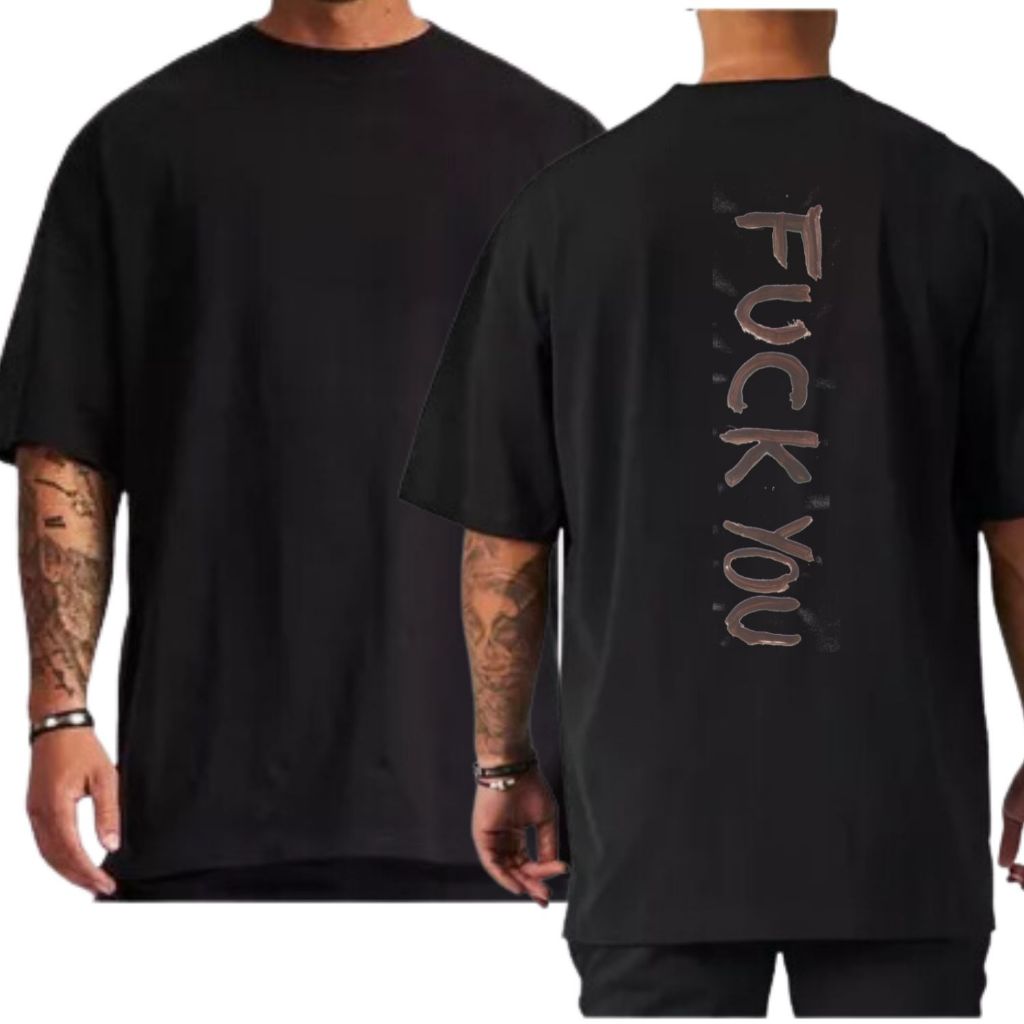Camiseta Fuck You Oversized Street Moda Streetwear Larga Ombro Caído 100% Algodão Gola Canelada