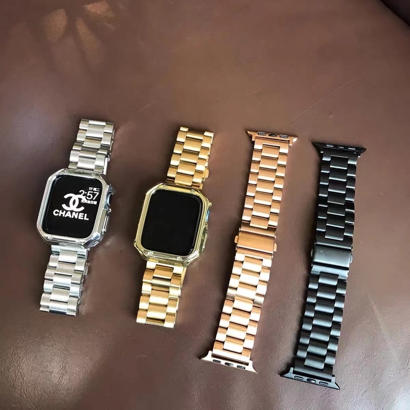 Pulseira E Estojo De Aço Inoxidável Compatível Com Apple Watch Series 8 7 6 5 4 3 SE TPU Capinha Proretiva Para iWatch 45mm 44mm 41mm 40mm