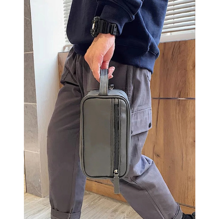 Bolsa de Mão Necesserie em Couro Masculina Feminina para Viagem Necesser Estilo Moderno Despojado Amplo Espaço /Mostra APENAS / banho/ produtos de higiene e cuidados pessoais//Viagem de Negócios/Impermeável