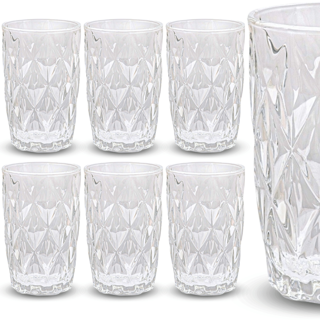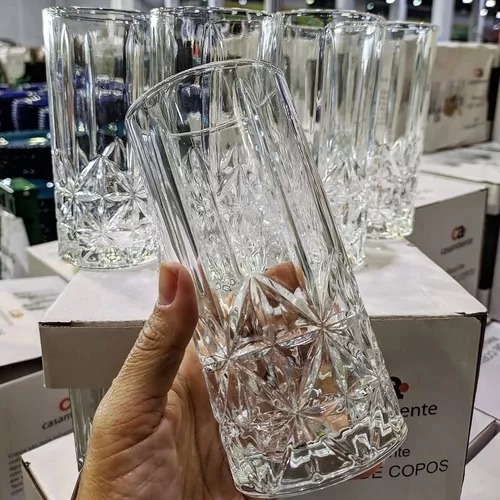 Jogo 6 Copo Diamante De Vidro Transparente Bico De Jaca 260ml