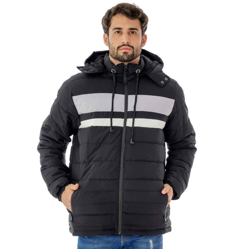 Jaqueta Masculina Forrada, Casaco Masculino de Nylon, Bobojaco com Capuz Removível