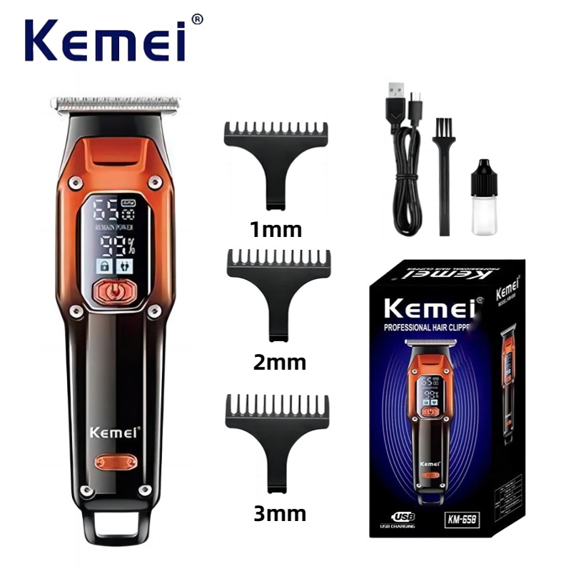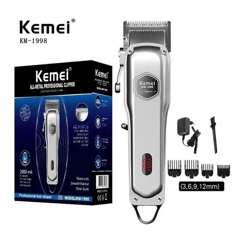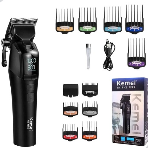 Maquina De Cortar Cabelo Profissional Sem Fio Com Display em Led + 10 Pentes Original Kemei Km-1858