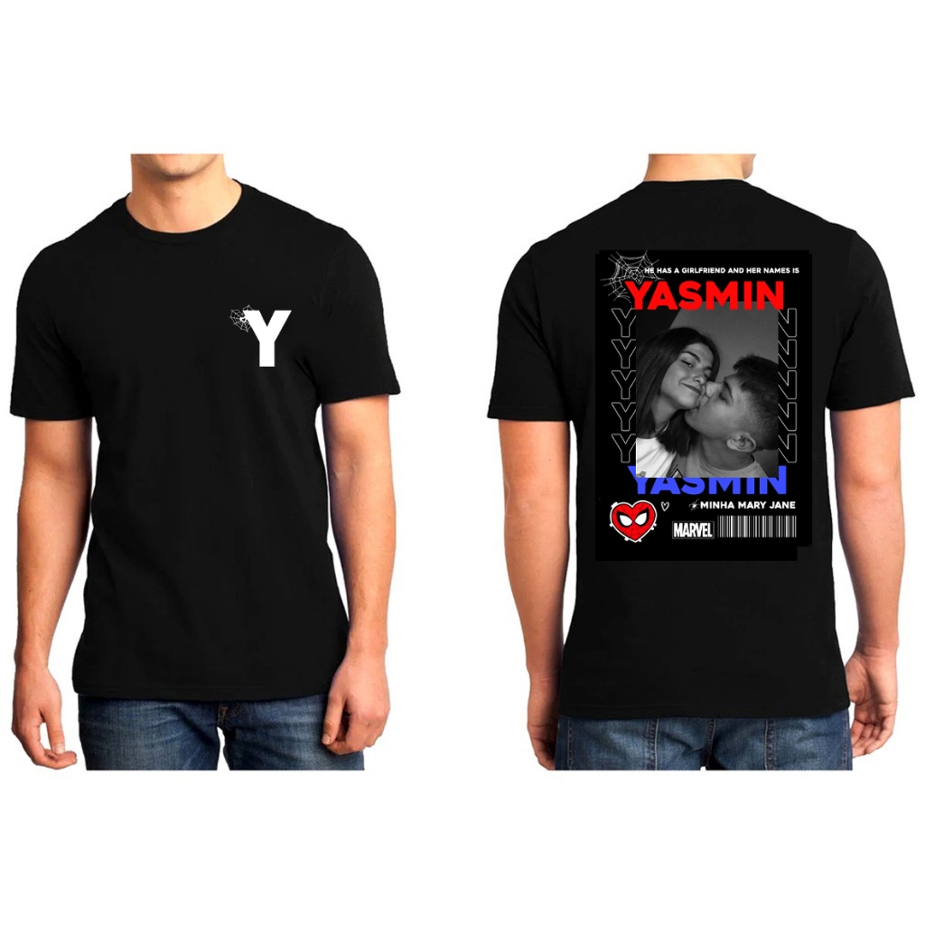 Camiseta Casal SPIDERMAN HOMEM-ARANHA MARY JANE com nome e inicial tiktok namorada frente e verso preta blusa, namorada, tiktok casal