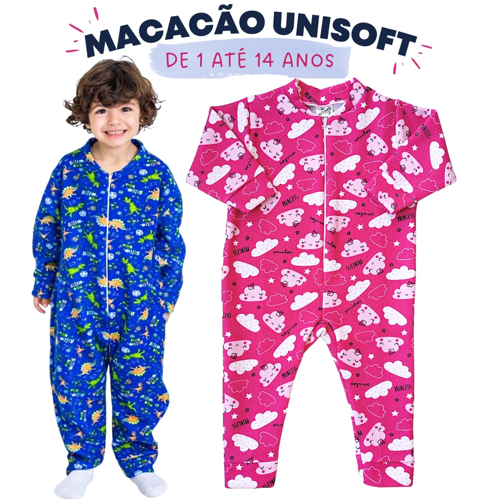 Macacão infantil Menina Menino Bebe 1 à 14 anos Unisoft Longo Inverno Pijama Zíper Estampado 001939