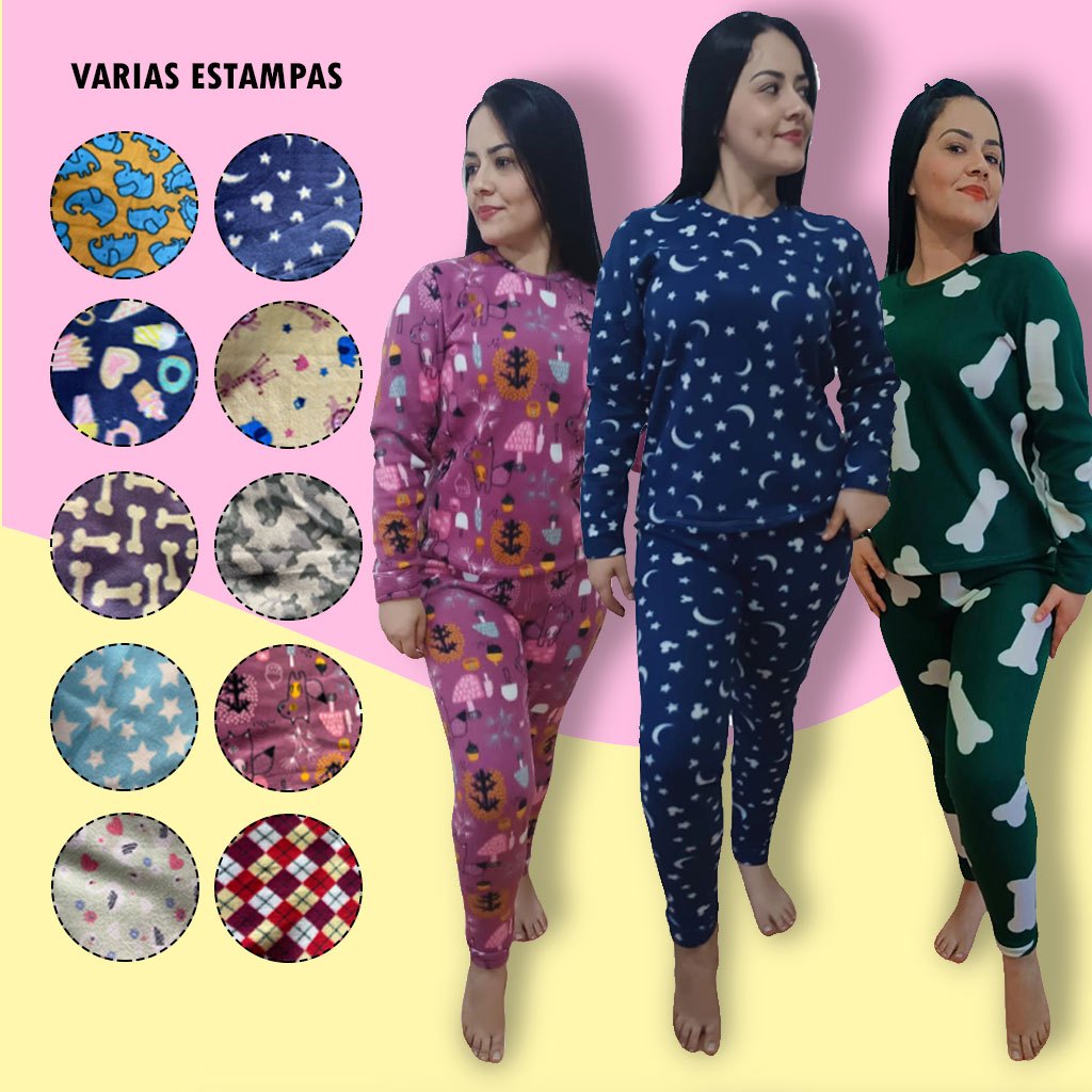 Pijama Feminino Soft Quentinho Inverno Liso e Estampado