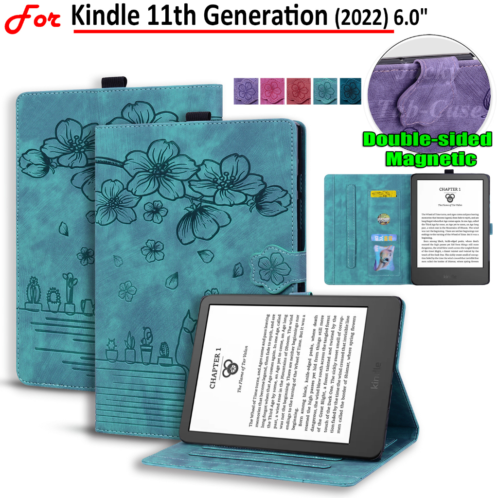 Para Todos Os Novos Kindle Básico 11a Geração 6.0 Inch 2022 Lançamento Da Capa Do E-book Kids 2022 [Modelo NO : C2V2L3] Romantic 3D Cherry Blossom Cat Suporte Magnético De Couro Flip