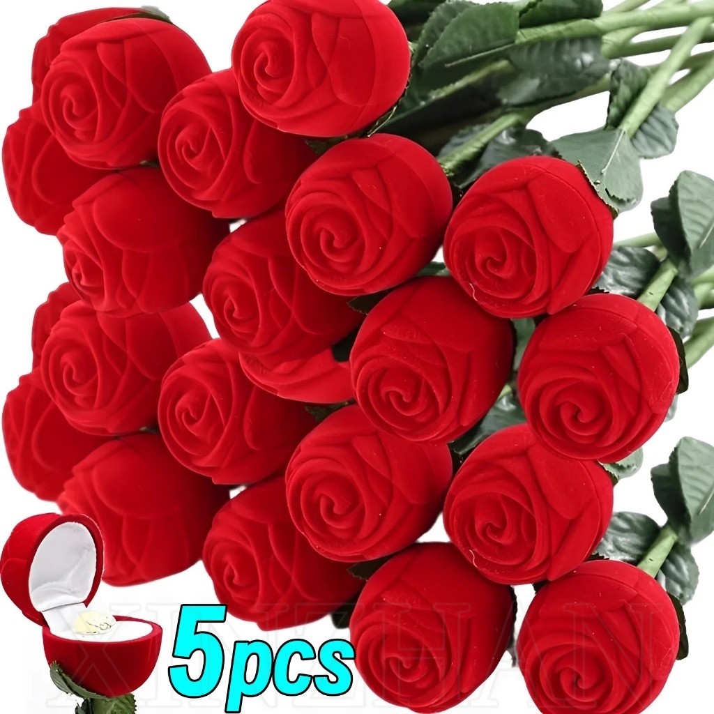 Caixa De Romantic Bouquet Proposta De Anel-Para O Aniversário De Casamento No Dia Dos Namorados-Criativa De Noivado Rosa Vermelha Jóias Em Forma De Flor De Veludo Brincos