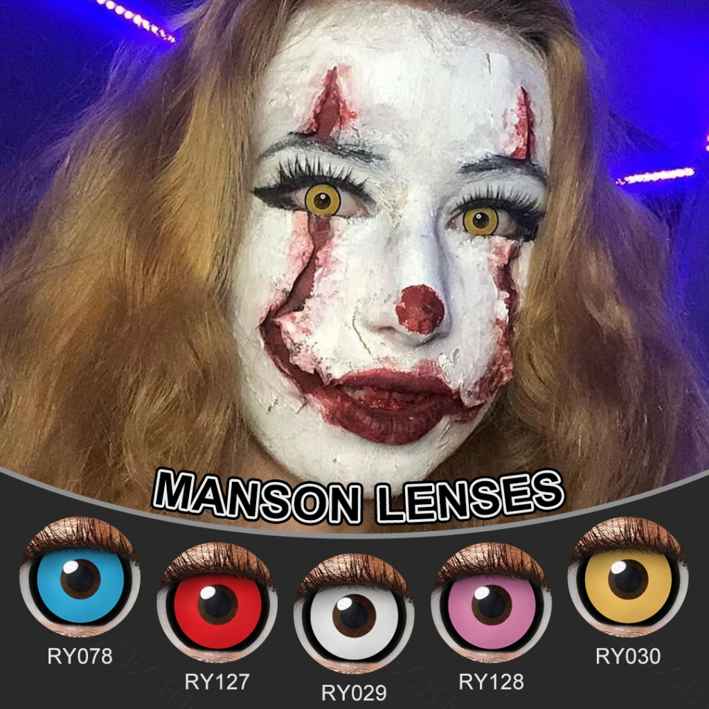 Pseyeche Branco Marilyn Manson Cosplay Lentes De Contato Anual Uso festa de Halloween 1 Par