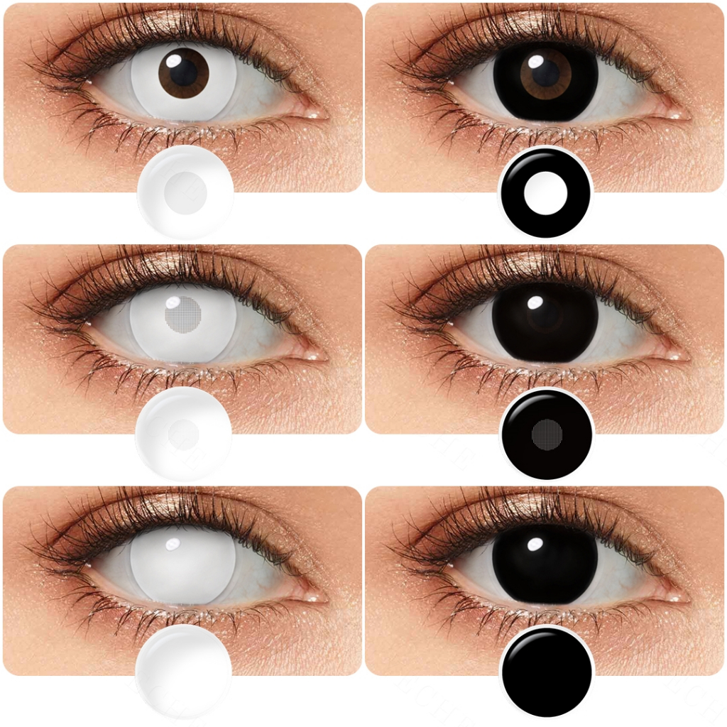 Pseyeche Lentes De Contato Cosplay Branco preto 14,0mm Halloween Festa Lentes uso anual 1 Par