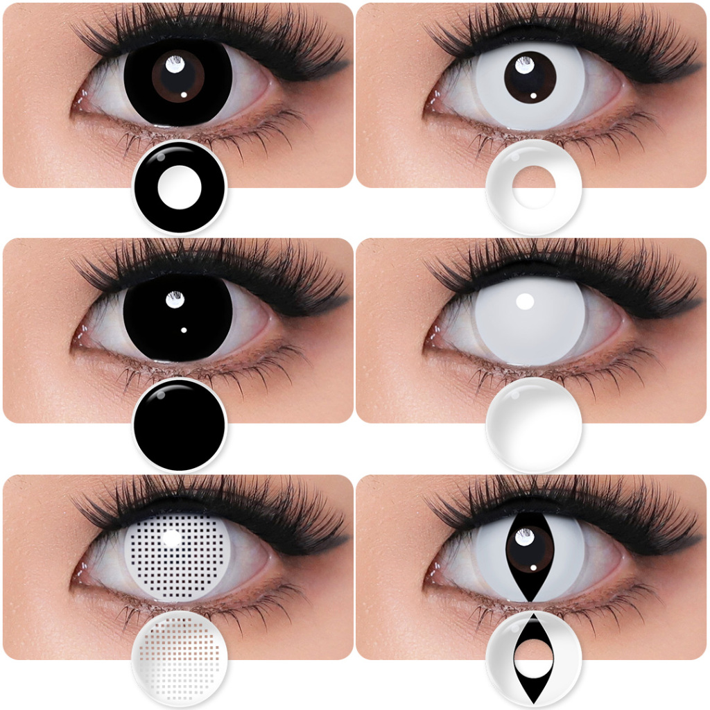 Pseyeche Cosplay Lente De Contato Lentes De Halloween Anime Anual Branco Preto 1 Par