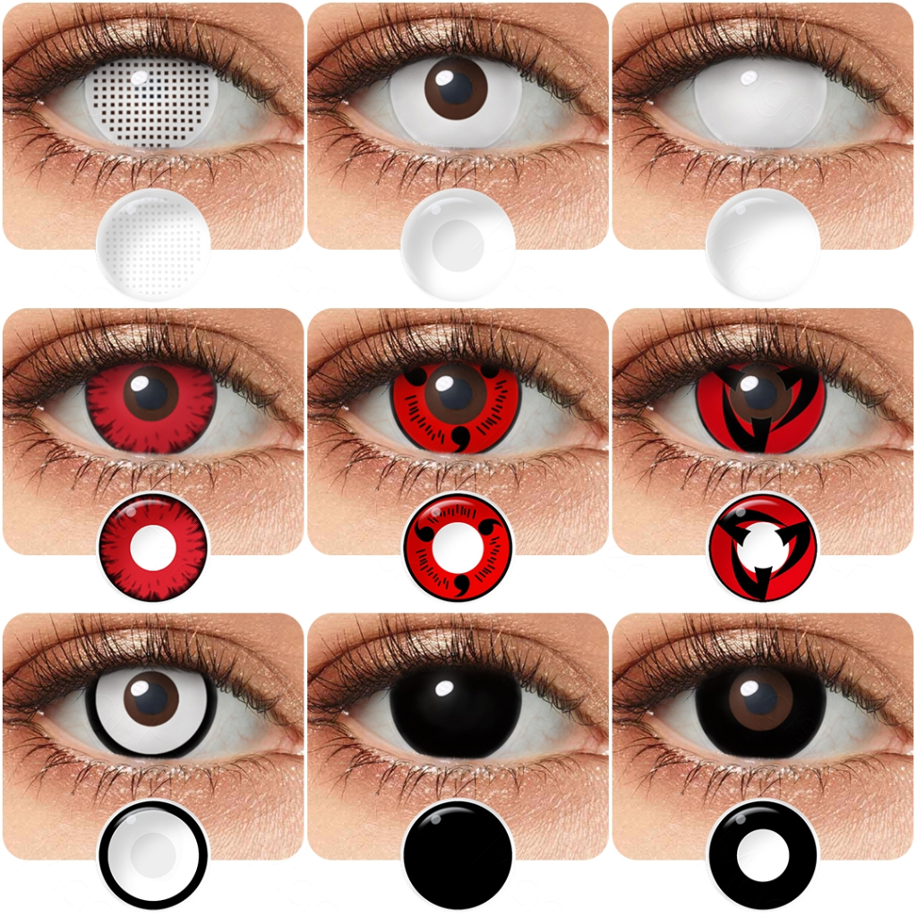 Pseyeche Lente De Contato Branca Halloween Cosplay Lentes Anime Anual Role-playing Preto Vermelho 1 Par