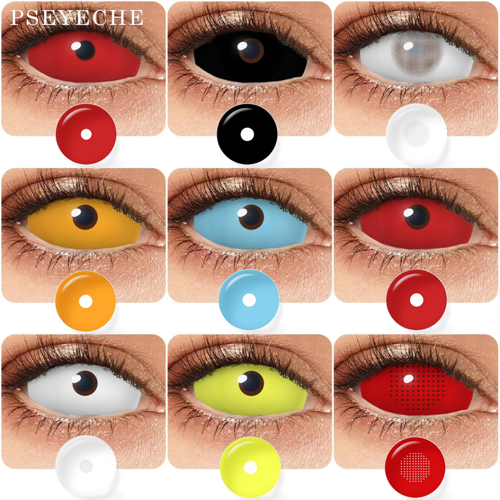 Pseyeche Lentes De Contato Branco/Preto/Vermelho Cosplay Olhos Para Halloween Festa Grandes 14,0~14,5mm Annual 1 Par