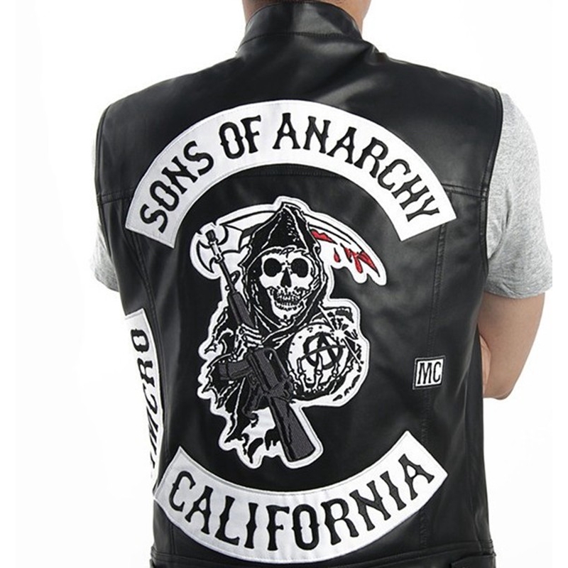 Colete De Couro De Colarinho De Locomotiva Harley punk Frota Filhos Da Anarquia Motocicleta Cor Sólida
