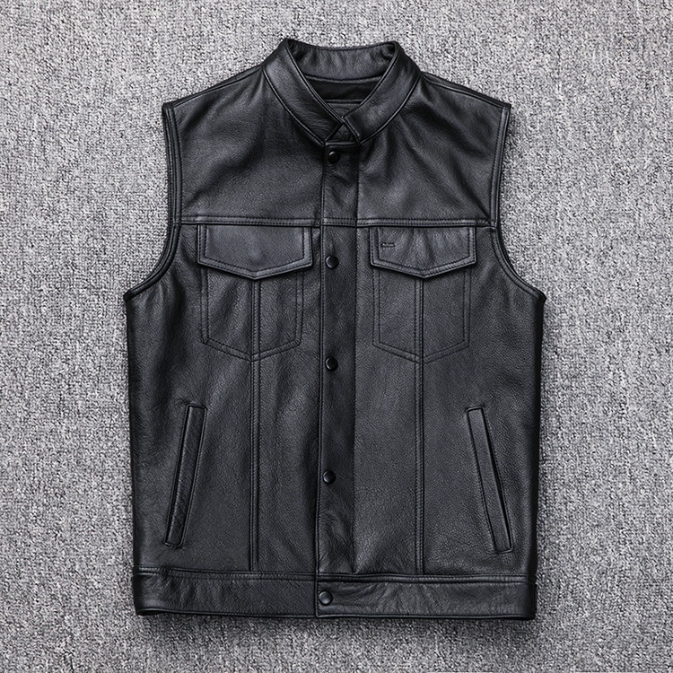 Colete Colete Excelente botão de zíper Locomotiva motocicleta Colete de couro de lazer