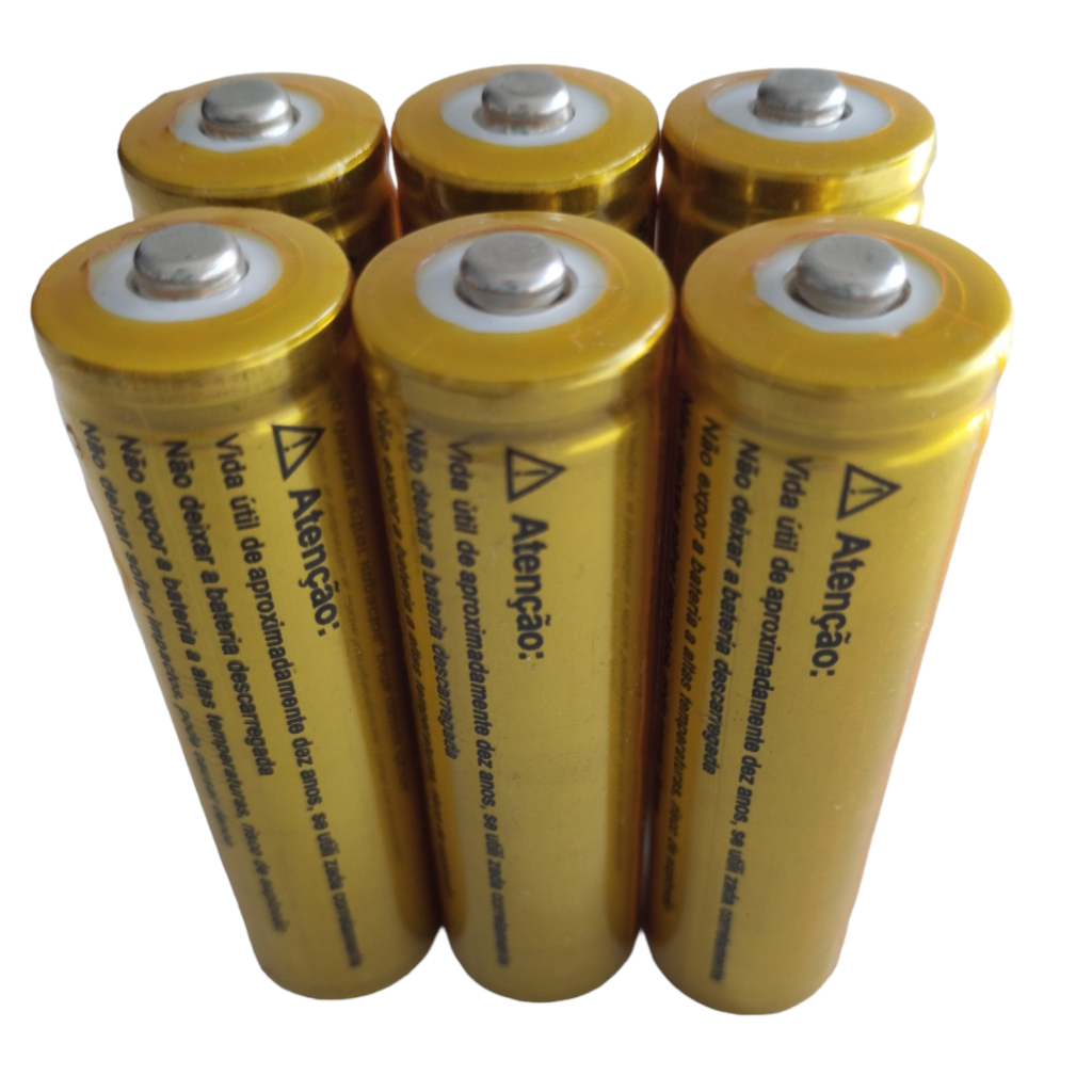 Kit 6 Bateria18650 Li-ion 8800mh 3.7v Lanterna Tática Led Rosa/Azul/Dourada Sem Pino