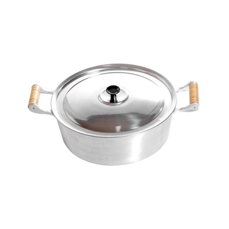 Panela Grande N 28 Caçarola Aluminio Batido Fundido Grosso Polido Para Restaurante Alça de Madeira com Tampa