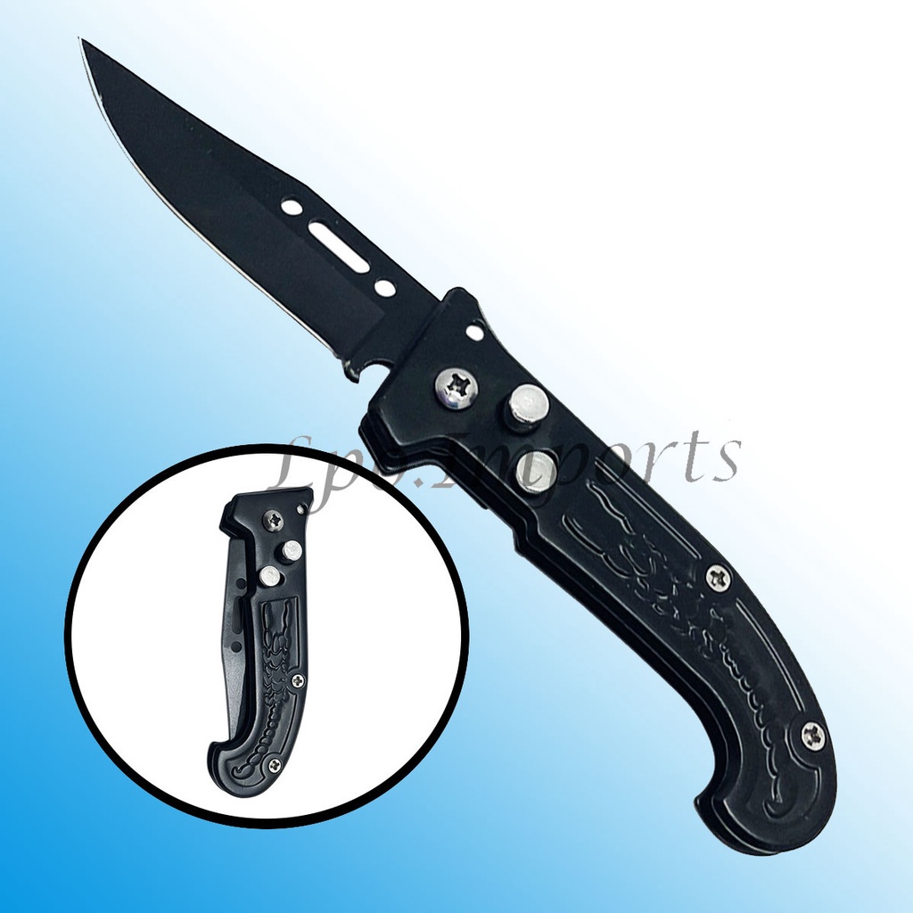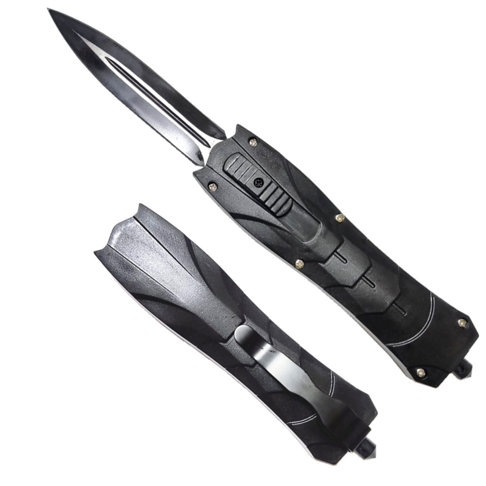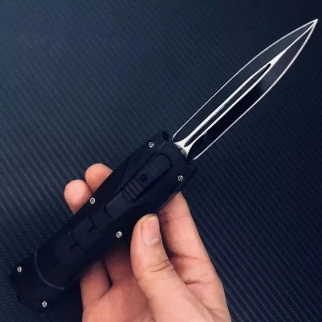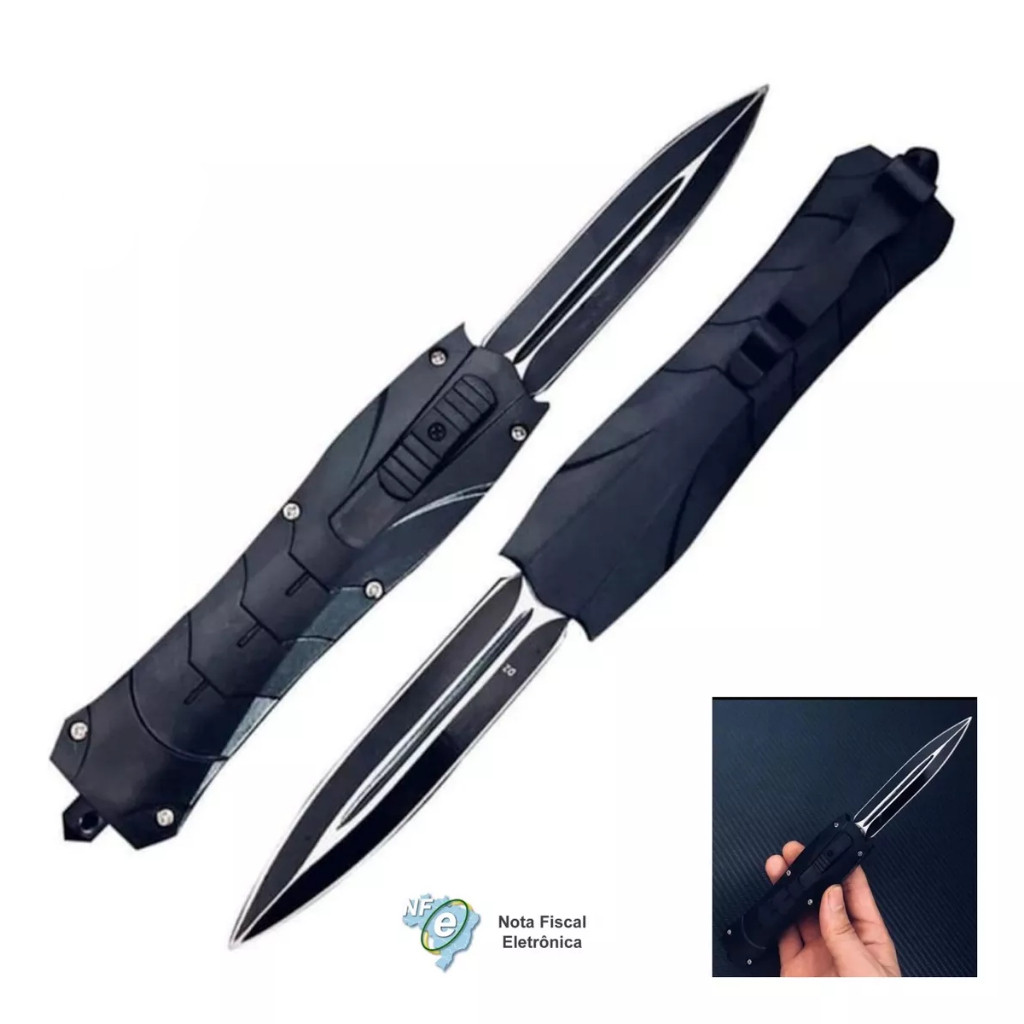 Faca Canivete Com Trava Tático Automático Acampamento Saque Rápido Aço Inox Preto