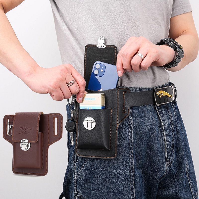Bolsa Para Cintura Masculina De Couro Grande Capacidade Ombro Marrom Celular Com Fivela De Múltiplas Camadas Vagabundo