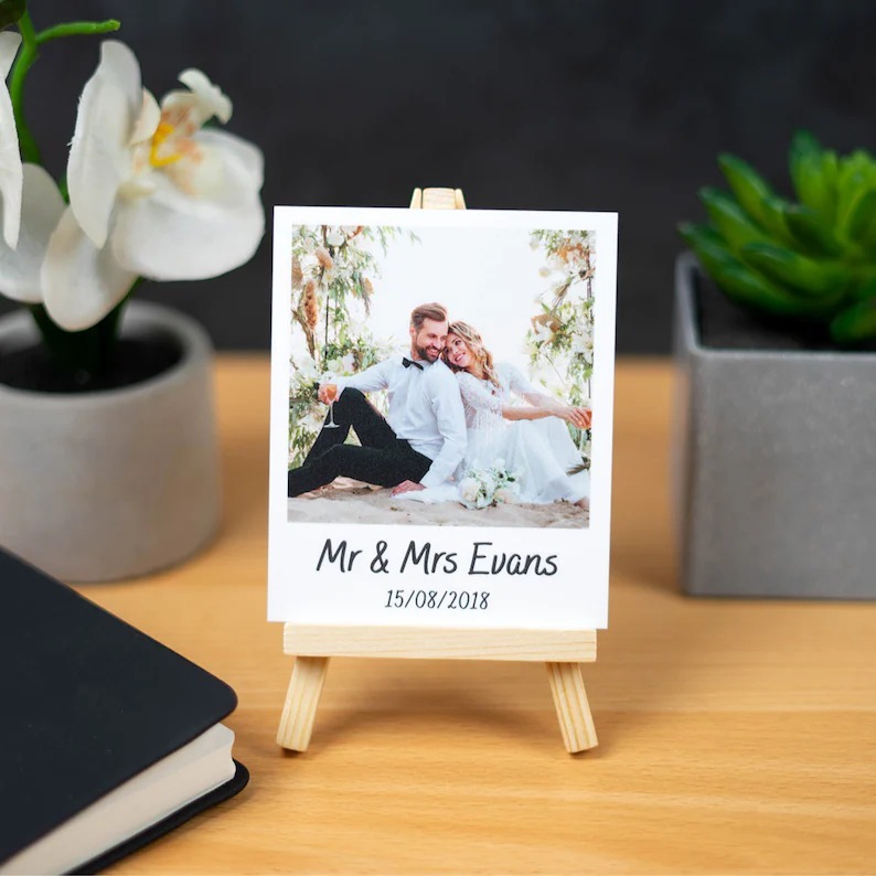Kit Placa e Mini Cavalete de Mesa Personalizado para Casamento Festa Aniversário Formatura Dia dos Namorados Mães Foto Noivo Decoração