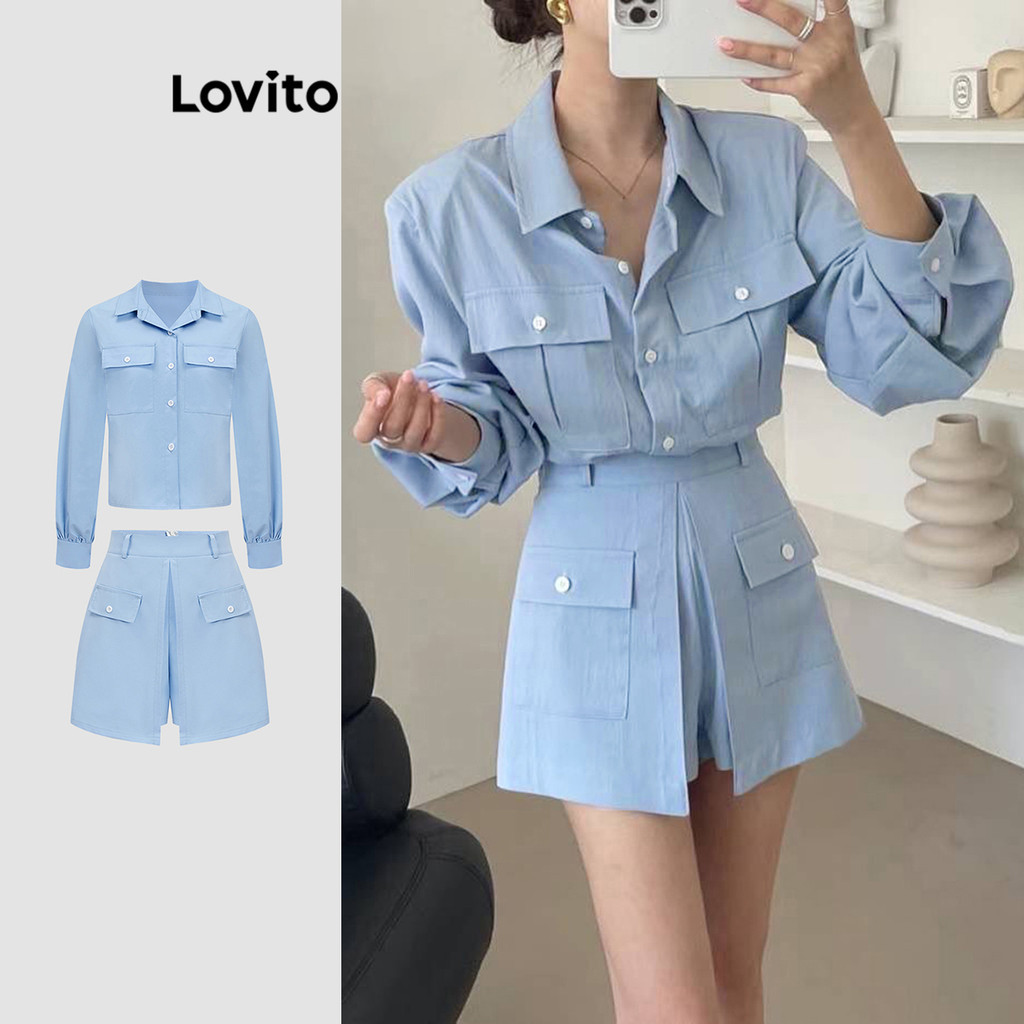 Lovito Tops Ou Calças Elegantes Com Bolso De Botão, Verão/Primavera, Tops Ou Calças Com Cinto Para Mulheres LBL22636