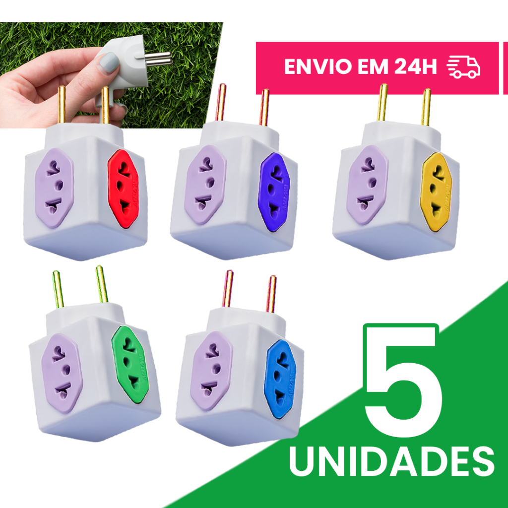 KIT 5 Adaptador Tomada Benjamin Cubo t 4 entradas 10a/20a casa e cozinha coloridos