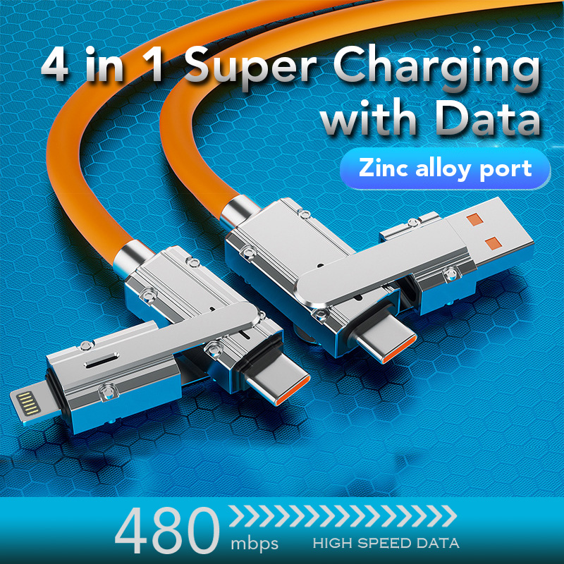 Cabo De Carregamento ultra-Rápido 4 Em 1 De 100 W , Adequado Para Todos Os Telefones Celulares Com Conectores USB Tipo C