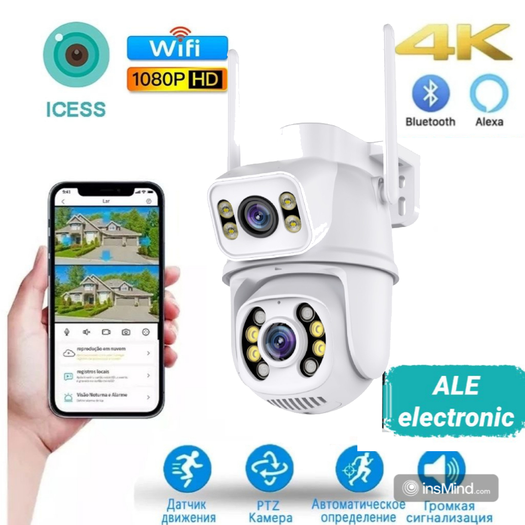 Câmera Segurança Externa 4K Wi-Fi 3 Lentes 180°, Zoom Ótico, IA Detecta Pessoa Animal , Visão Noturna, à Prova d'Água