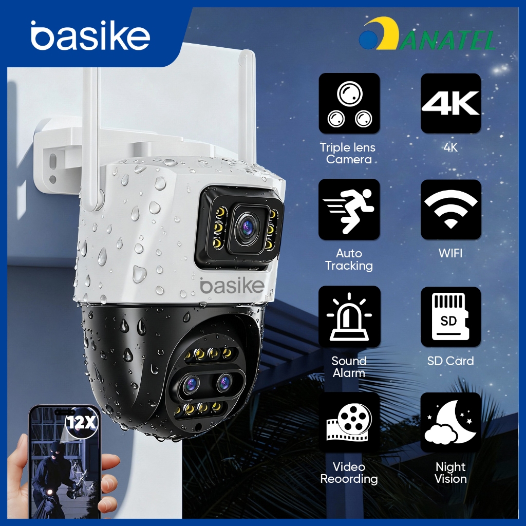 BASIKE Câmera Segurança 3 Lentes 12x Zoom 360° Visão 4K Noite Colorida Wi-Fi IP66 Prova DÁgua Detecção Movimento
