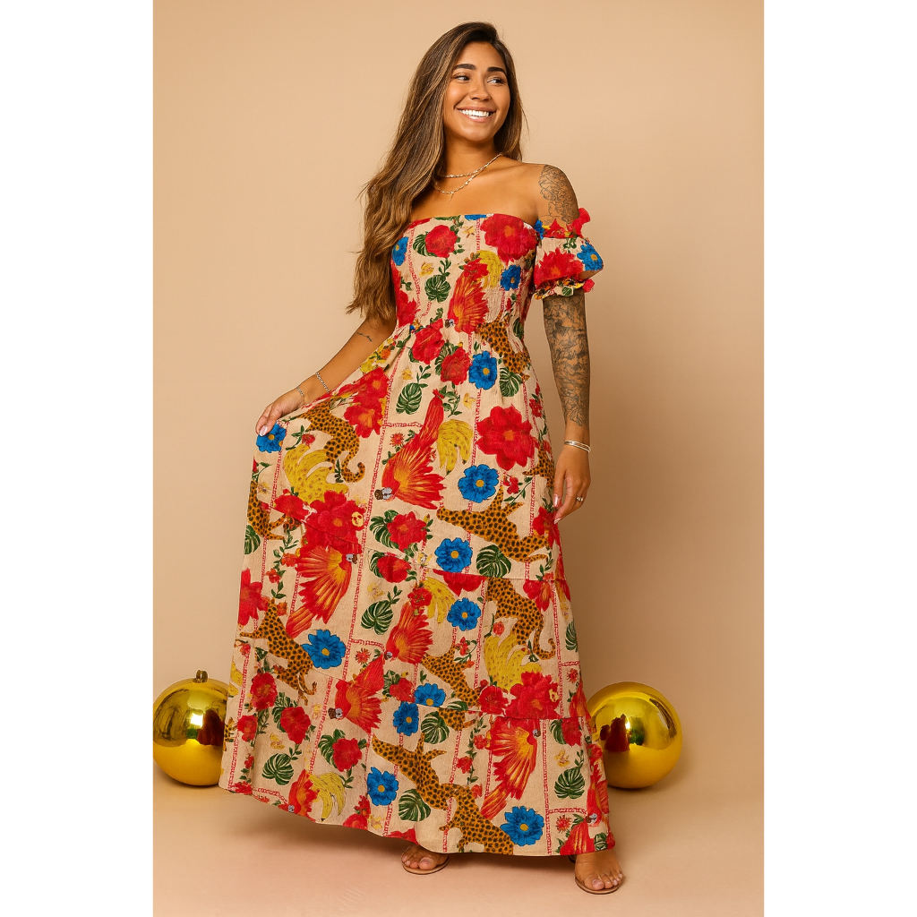 Vestido Feminino Longo Alcinha Confortável Casual Moda Leve Elegante Estampado Moderno Estiloso Com Bojo Forrado - Meimi Amores