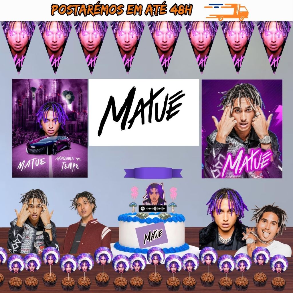 Kit Festa Pronta Matuê personalizado com nome e idade, Pegue e monte