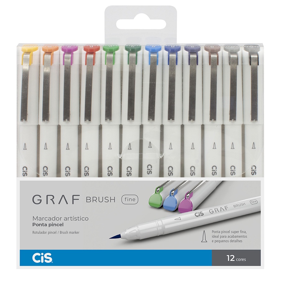 Estojo de Marcador Ponta Pincel Graf Brush Cis Fine com 12 Cores