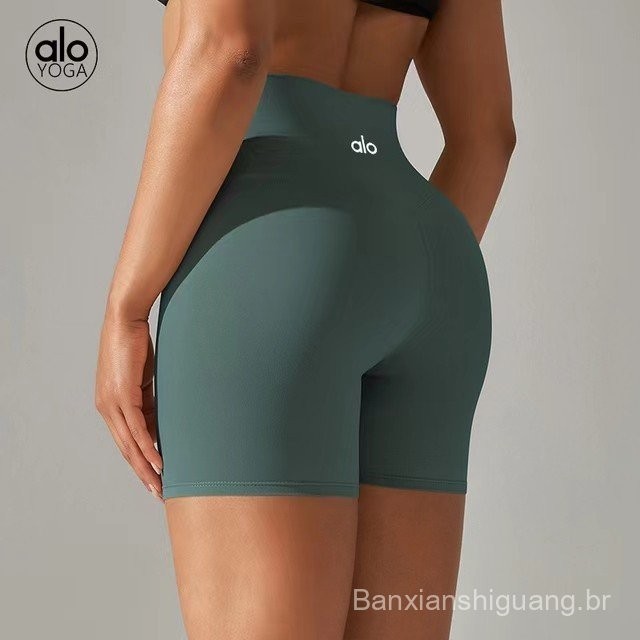 Alo Mesmo Yoga Mulheres de Cintura Alta Dupla Face Escovado Yoga Calções Esportivos Alta Elástica Anti-Exposição Respirável Curto Comprimento Calças