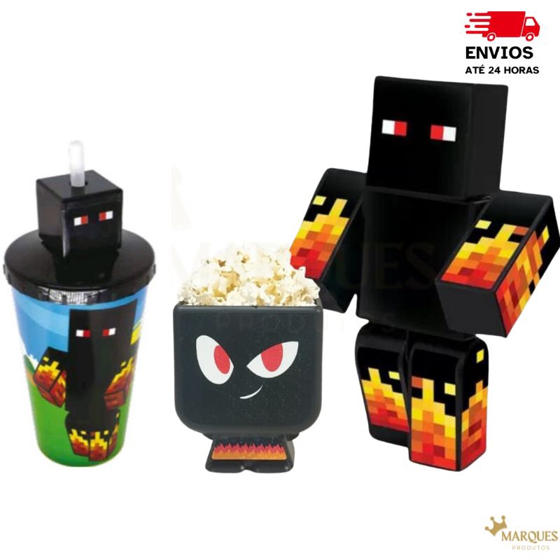 Kit Boneco Athos 25 cm com 3 Chaveiros Ferramenta + Balde de Pipoca + Copo Cabeça Quadrada 550ml